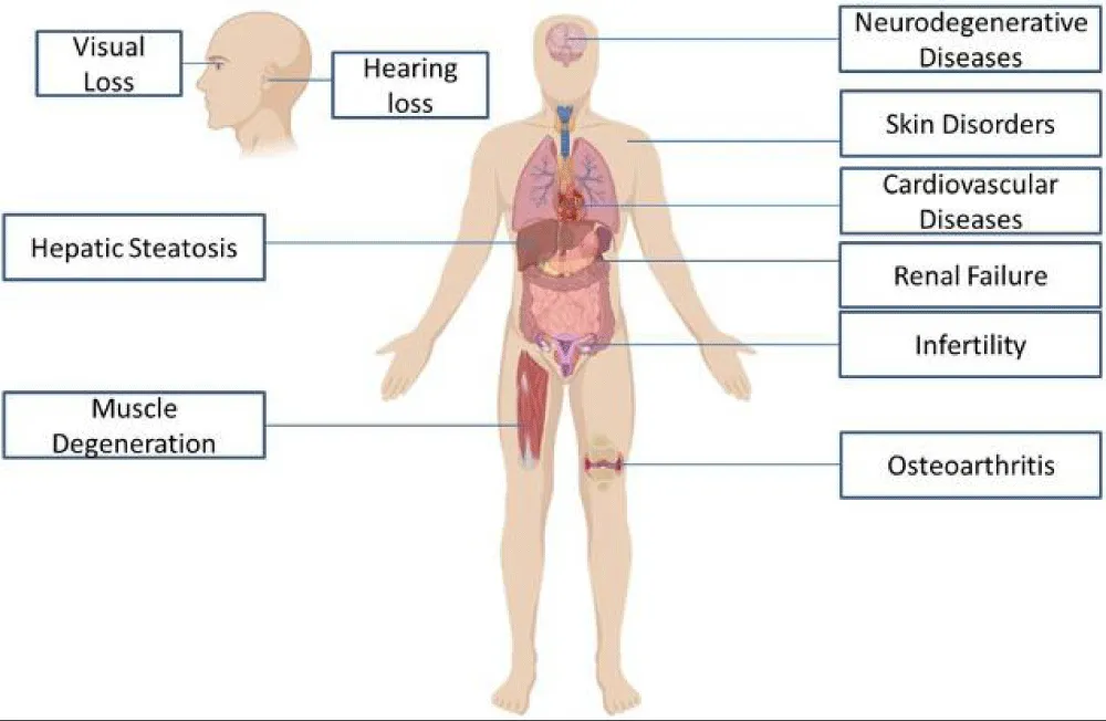 Conclusion: NAD⁺ occupies a central position at the interface of energy metabolism, genome integrity, and immunometabolic signaling, providing a coherent framework for understanding how cellular stress can propagate multisystem dysfunction. Although NAD⁺-boosting strategies are biologically plausible and mechanistically supported, definitive clinical benefit across skin, fertility, osteoarthritis, sensory decline, gut disorders, cardiovascular and hepatic disease, neurological conditions, and muscle health will require well-designed human studies with standardized biomarkers, safety surveillance, and clinically meaningful endpoints.