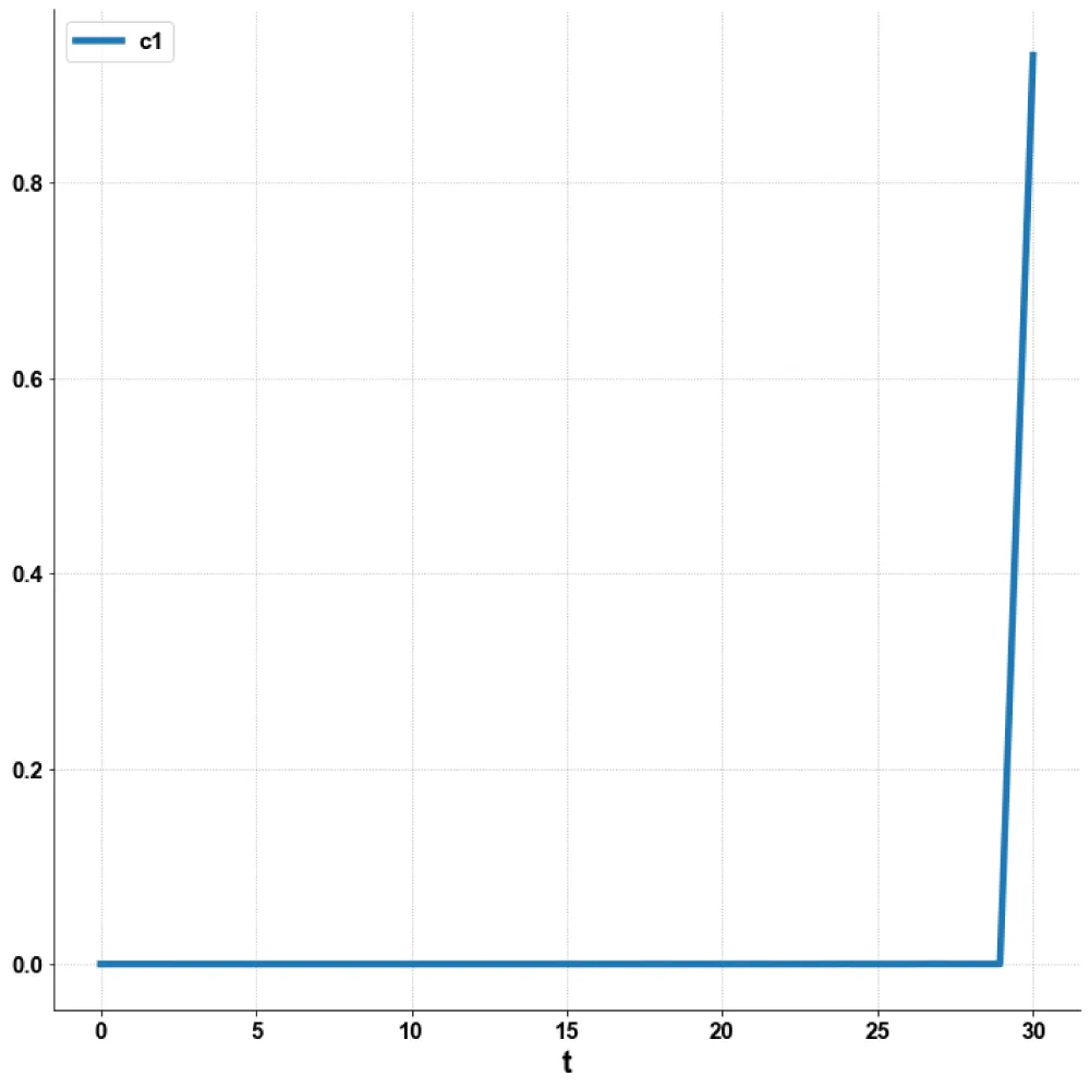 The MNLMPC value of the control variable, c1, was 5.735e-06. The various MNMPC figures are shown in Figures 2a-2d. The presence of the limit is beneficial because it allows the MNLMPC calculations to attain the Utopia solution, validating the analysis of Sridhar [36].